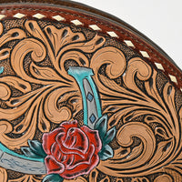 Premium Quality Material: This American Darling taco handbag is handcrafted from premium genuine full-grain leather, known for its lasting strength and beautiful natural texture. The surface features detailed hand-tooled floral carvings, highlighted with deep blooms that stand out against the rich background—bringing timeless Western artistry to life.