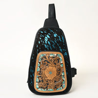 American Darling Floral Hand Tooled Bag | Hair on Cowhide Sling