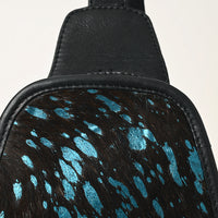 Illuminate your Western wardrobe with this vibrant sling backpack from American Darling. This piece is a masterclass in mixed-media design, featuring a striking body of yellow hair-on cowhide with unique silver speckles. The front zipper pocket is the star of the show, crafted from rich genuine leather and hand-tooled with an intricate motif. It’s a rugged yet sunny accessory designed for the bold spirit.