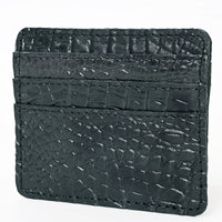 Streamline your essentials with this ruggedly elegant card holder from American Darling. Handcrafted from genuine leather, the surface features a striking crocodile embossed texture, lending an exotic, luxurious feel to this minimalist accessory. The slim profile ensures maximum comfort, allowing for easy, secure front pocket carry under the tightest Western wear.