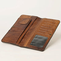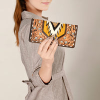 American Darling Hand-Tooled Leather Western Wallet Bag with Woven Saddle Blanket