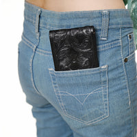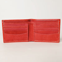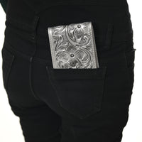 Invest in rugged elegance with this classic bifold wallet from American Darling. Handcrafted from durable, genuine leather, the exterior is completely covered in deep, traditional floral and scroll hand-tooling, lending a luxurious, textured finish. The classic horizontal bifold structure ensures a comfortable, pocket-friendly profile, making it ideal for both front and back pocket carry.