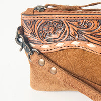 ADBG344 Embossed Leather Wristlet Western Fringe Clutch with Tooled Floral Design