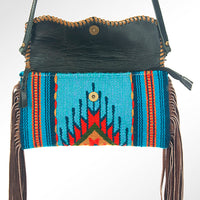 ADBG344 Southwestern Wool Wristlet Handwoven Blanket Clutch with Leather Strap