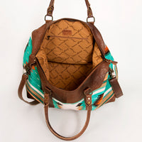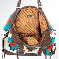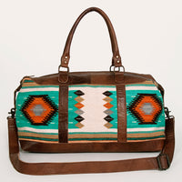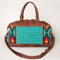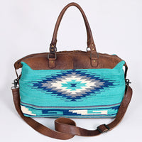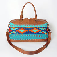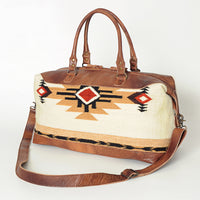 ADBG460 Southwestern Wool & Leather Duffel Bag Handwoven Saddle Blanket Travel Tote