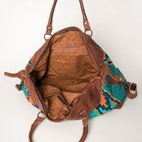Whether you're heading to the rodeo, a weekend getaway, or simply need a carry-all with character, this durable bag delivers comfort, style, and craftsmanship. The leather strap and strong antique hardware provide practical performance, while the detailed wool design highlights heritage and flair.