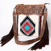 ADBG510 Tooled Leather & Saddle Blanket Crossbody Bag - Western Fringe Purse by American Darling