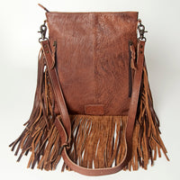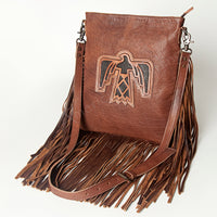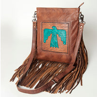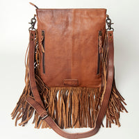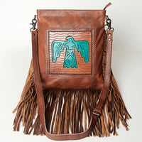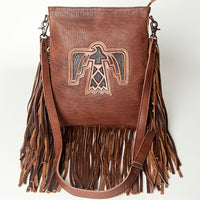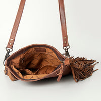 LC-ADBG719 Leather Fringe Crossbody Bag with Tooled Panel