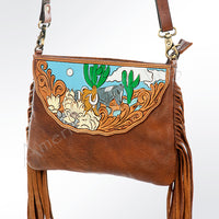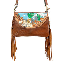 LC-ADBGA156 Tooled Leather Crossbody with Fringe Western Brown Shoulder Bag