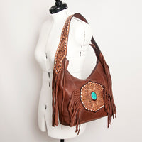 LC-ADBGA219 American Darling Hobo Bag Tooled Turquoise Medallion & Full Grain Leather with Fringe