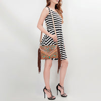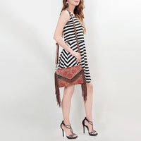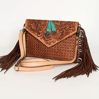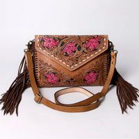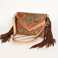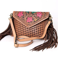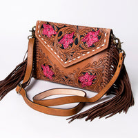 LC-ADBGA290 American Darling Hand Tooled Leather Crossbody with Floral design & Fringe