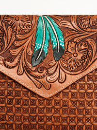Brighten your Western wardrobe with this American Darling crossbody bag, handcrafted from genuine leather and detailed with a beautifully hand-tooled Floral design on the front flap. Fringed sides and intricate floral tooling throughout give it a timeless Western flair.