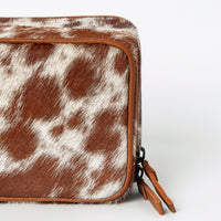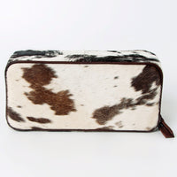 This handcrafted rectangular Jewelry case is made from premium hair-on cowhide leather, showcasing natural hide patterns for a rugged yet refined look. Designed for versatility, it serves perfectly as a travel pouch, toiletry kit, or jewelry organizer. The zippered closure ensures secure storage while the compact structure makes it ideal for both everyday use and on-the-go adventures.