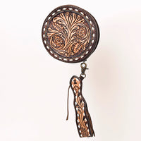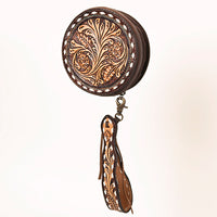 Elevate your Western look with this artisan-crafted round leather Canteen bag. Featuring an eye-catching, floral tooled design on a structured circular silhouette, this piece is a tribute to classic cowboy craftsmanship and vintage charm.