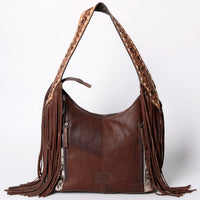 LC-ADBGI112 Becca Western Hobo Bag - Hair-On Hide with Floral Tooled Leather & Fringe