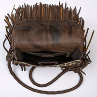 LC-ADBGM250 Leopard Print Hair-On Leather Crossbody - Turquoise Concho & Fringe Western Bag