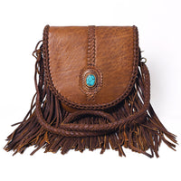 LC-ADBGM262 Tan Leather Fringe Messenger Bag - Braided Edge & Turquoise Concho
