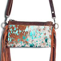 LC-ADBGS142 Hair-On Cowhide Crossbody - Western Fringe Leather Purse