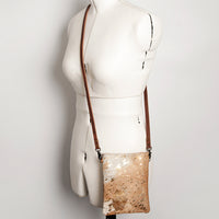 Chic and rugged meet in this handcrafted Chaps bag, made with genuine hair-on cowhide and accented with metallic gold speckles. Its compact design is perfect for keeping essentials close, while the natural hide patterns make each bag one-of-a-kind.