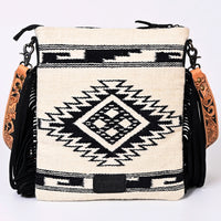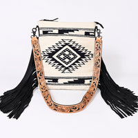 ADBGS192 Wool Large Crossbody Bag with Tooled Leather Strap and Fringe - Western Boho Purse