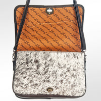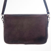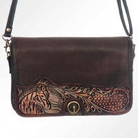 LC-ADBGZ342 Horse Tooled Leather Crossbody Bag - Genuine Brown Leather with Hair-On Cowhide Sides