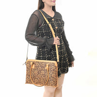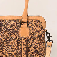 LC-ADBGZ801 Hand-Tooled Leather Tote Satchel - Western Floral Laptop Bag in Natural Tan