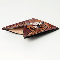 ADCCF106 Hand-Tooled Leather Card Holder - Western Bull Skull & Floral Design