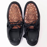 LC-ADFT135 Women's Black Canvas Tooled Leather Western Loafers - American Darling Slip-On Shoes