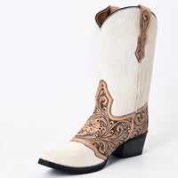 LC-ADFT166B Hand Tooled Hair On Genuine Western Leather Long Boot