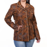 LC-ADJKTLTR01 Women's Distressed Brown Leather Western Blazer Jacket with Whipstitch Detailing