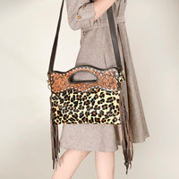 The handpicked cowhide hair-on genuine leather not only adds a soft and tactile element but also serves as an embellishment, enhancing its overall western appearance.